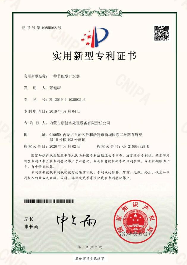 - 內(nèi)蒙古康健水處理設(shè)備有限責(zé)任公司是專業(yè)生產(chǎn)制造水處理設(shè)備、飲料設(shè)備、奶設(shè)備、殺菌設(shè)備、灌裝設(shè)備五大系列90余種配套產(chǎn)品。在反滲透、超濾、納濾、EDI模塊、等膜分離領(lǐng)域有著雄厚的技術(shù)實(shí)力,同時(shí)在水廠設(shè)計(jì)、中水回用、污水處理、分質(zhì)供水、無(wú)負(fù)壓變頻供水、鍋爐軟化水設(shè)備等領(lǐng)域有完善的技術(shù)團(tuán)隊(duì)和營(yíng)銷網(wǎng)絡(luò)。公司坐落在遼闊大草原上美麗的首府——呼和浩特,是內(nèi)蒙古自治區(qū)唯一一家具有自主生產(chǎn)能力的企業(yè)。 “上善若水,水利萬(wàn)物而不爭(zhēng)”康健水工自成立以來(lái),始終堅(jiān)持“改善水質(zhì)、造福人類、服務(wù)社會(huì)、產(chǎn)業(yè)報(bào)國(guó)”的企業(yè)信條,以致力于開(kāi)創(chuàng)人類綠色健康生活為己任,秉承“關(guān)愛(ài)生命、責(zé)任至上”的企業(yè)宗旨,成就了享譽(yù)四方的國(guó)內(nèi)知名水處理企業(yè)。 水是生命的源泉、工業(yè)的血液、城市的命脈。水是不可替代的寶貴資源。節(jié)約用水,關(guān)注點(diǎn)滴 為節(jié)約水資源貢獻(xiàn)一份力量, 健康飲水,利在當(dāng)代,功在千秋! 只有在這里,才能領(lǐng)會(huì)水的精髓;只有在這里,才...